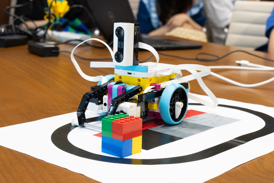 そんな様子を嬉しそうに見つめながら、成瀬さんが「これはレゴ® エデュケーション SPIKE™ プライムです。本当は組み立ても楽しんでほしいんだけど、今日は時間が短いので、すでに組み立てたものを用意しました」と話します。