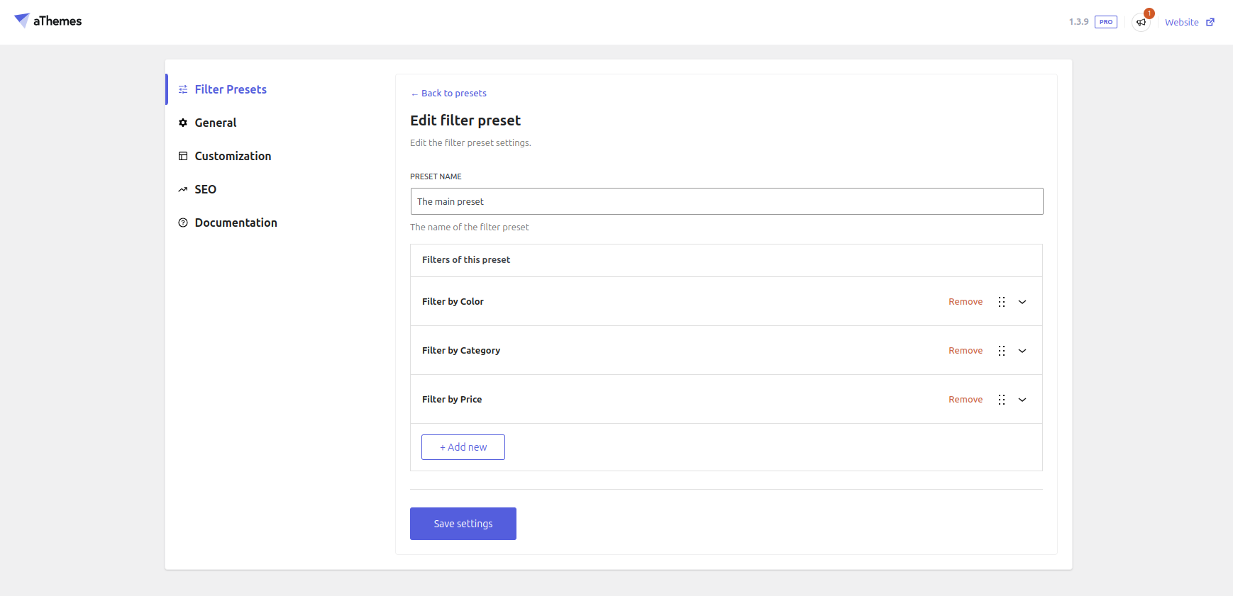 3. Setup the Filter Presets (required)