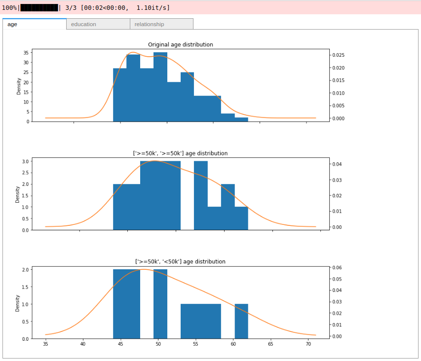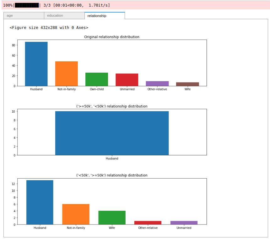 With tabular problems, looking at each individual row will probably not help us much. Instead what Class Confusion will do is plot every variable at whatever combination we dictate, and we can see how the distrobution of those variables in our misses changed in relative to our overall dataset distribution. For example, let's explore >=50k and <50k