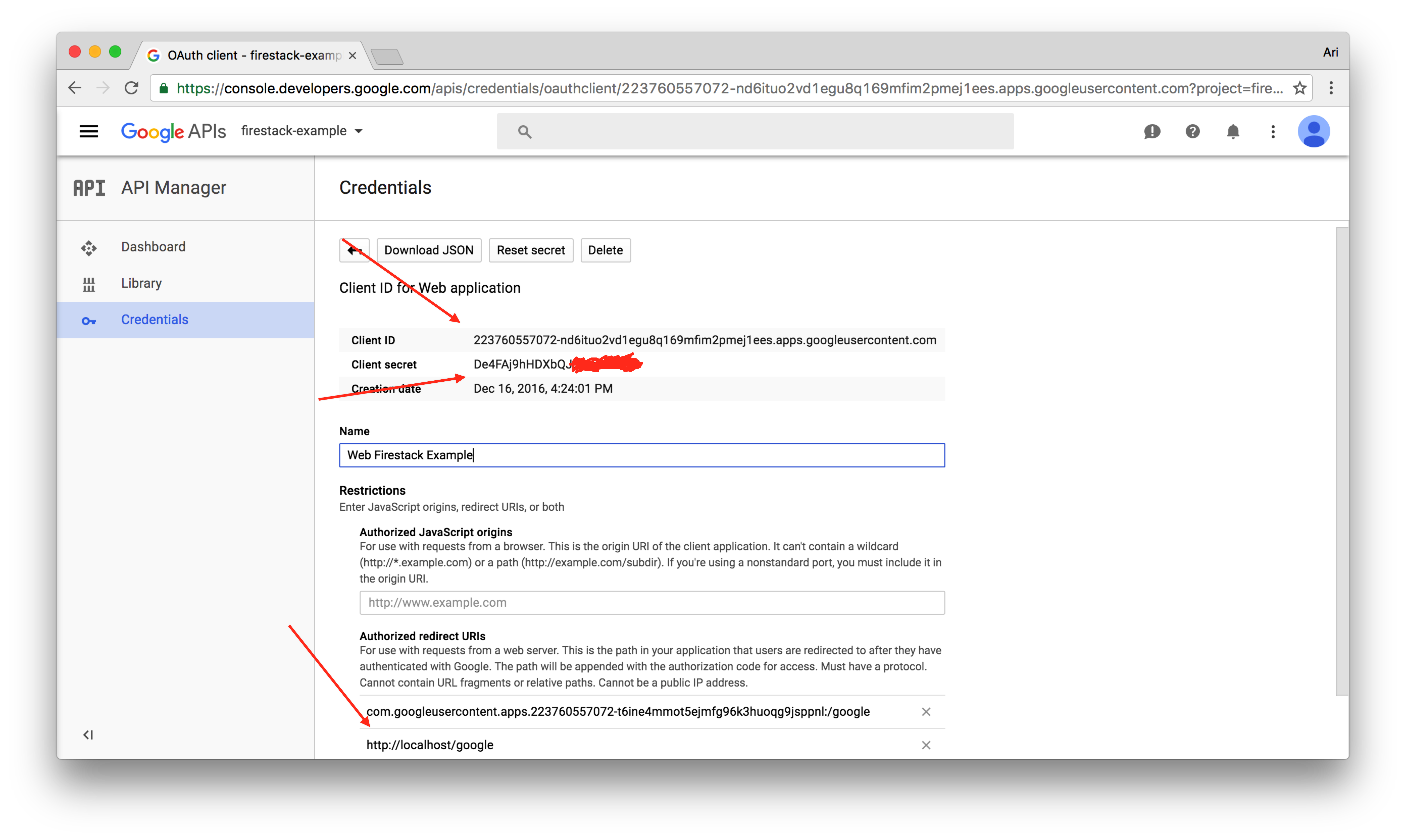 Take note of the client_id and the client_secret. We'll place these in our configuration object just like so: