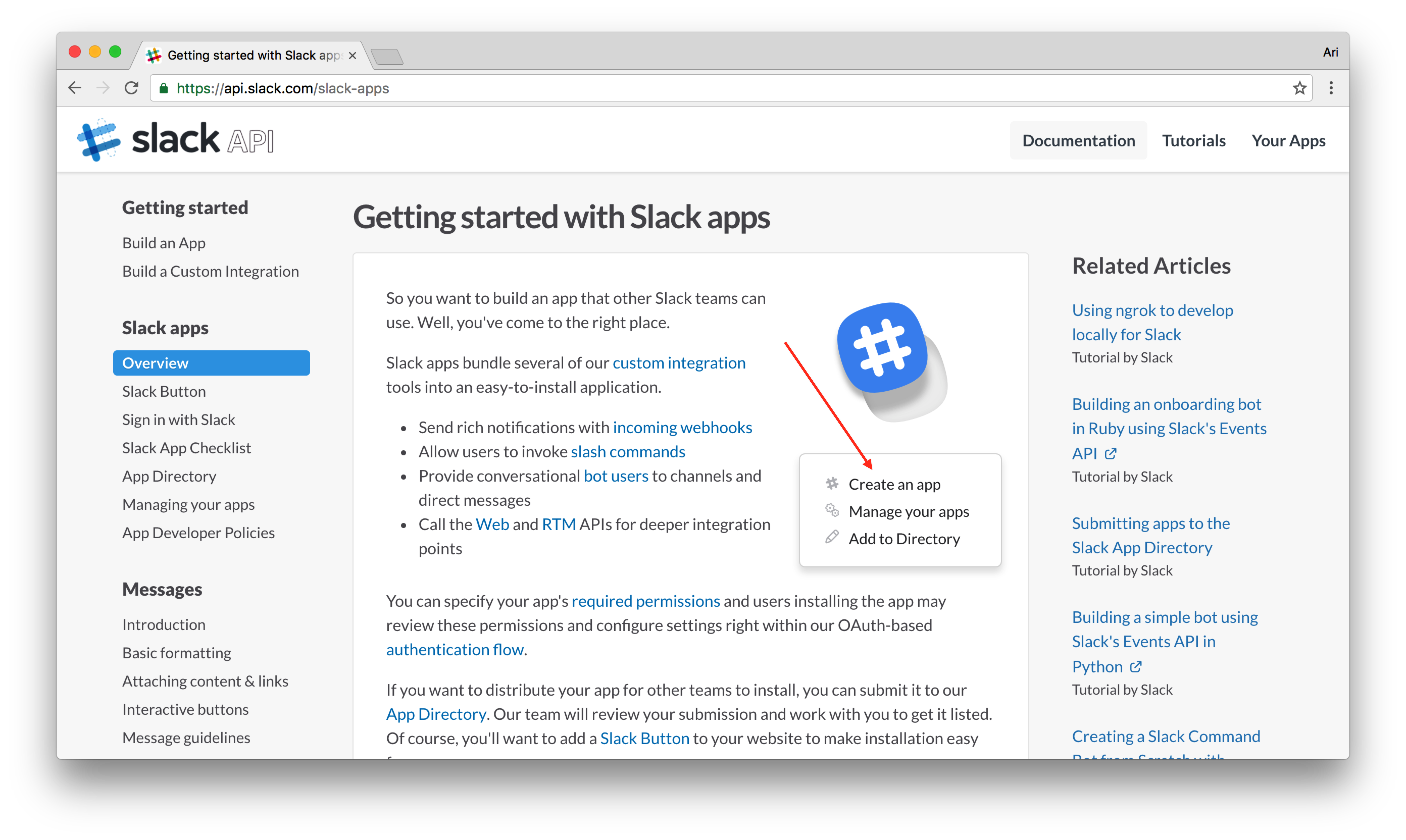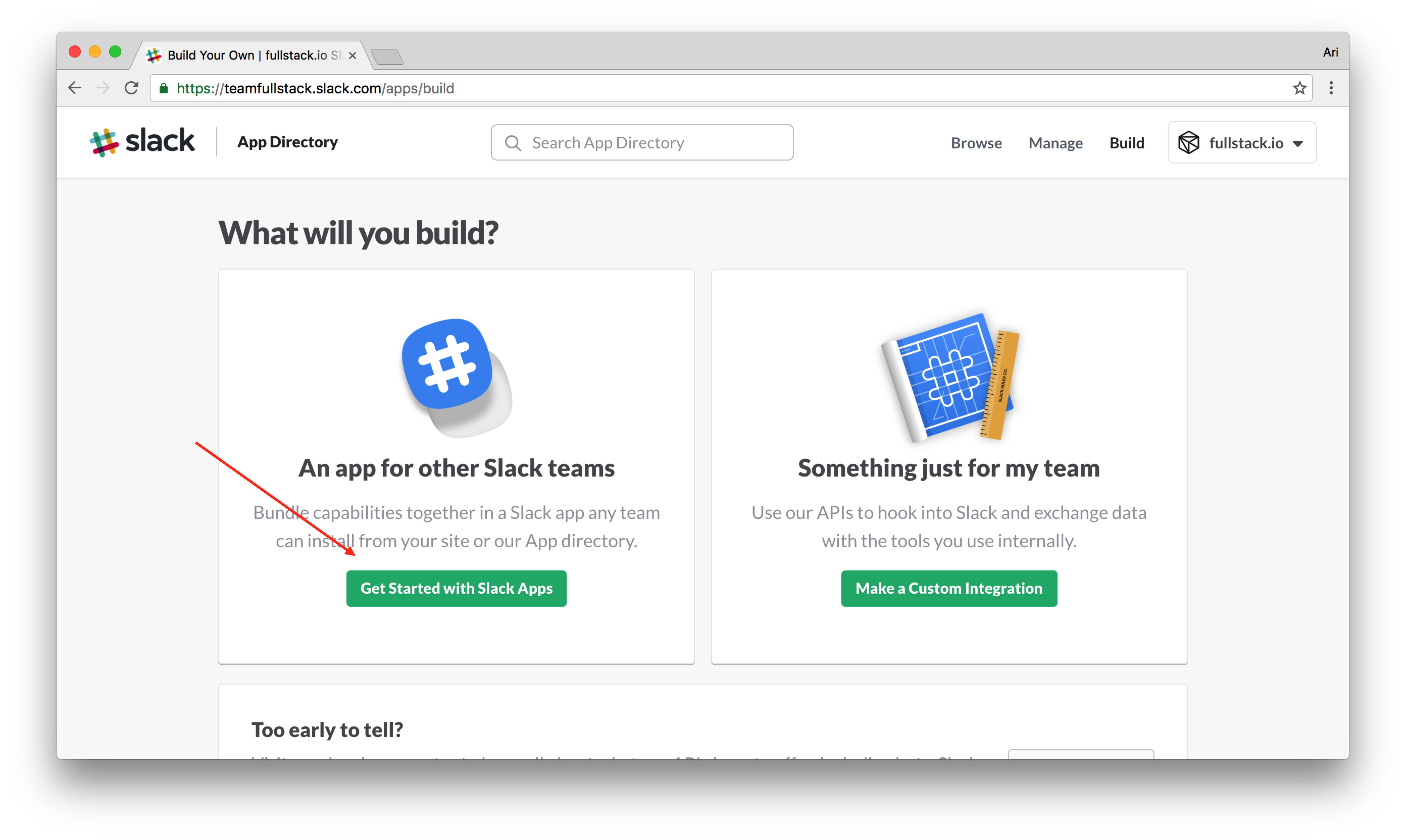 From here, find the create an app link: