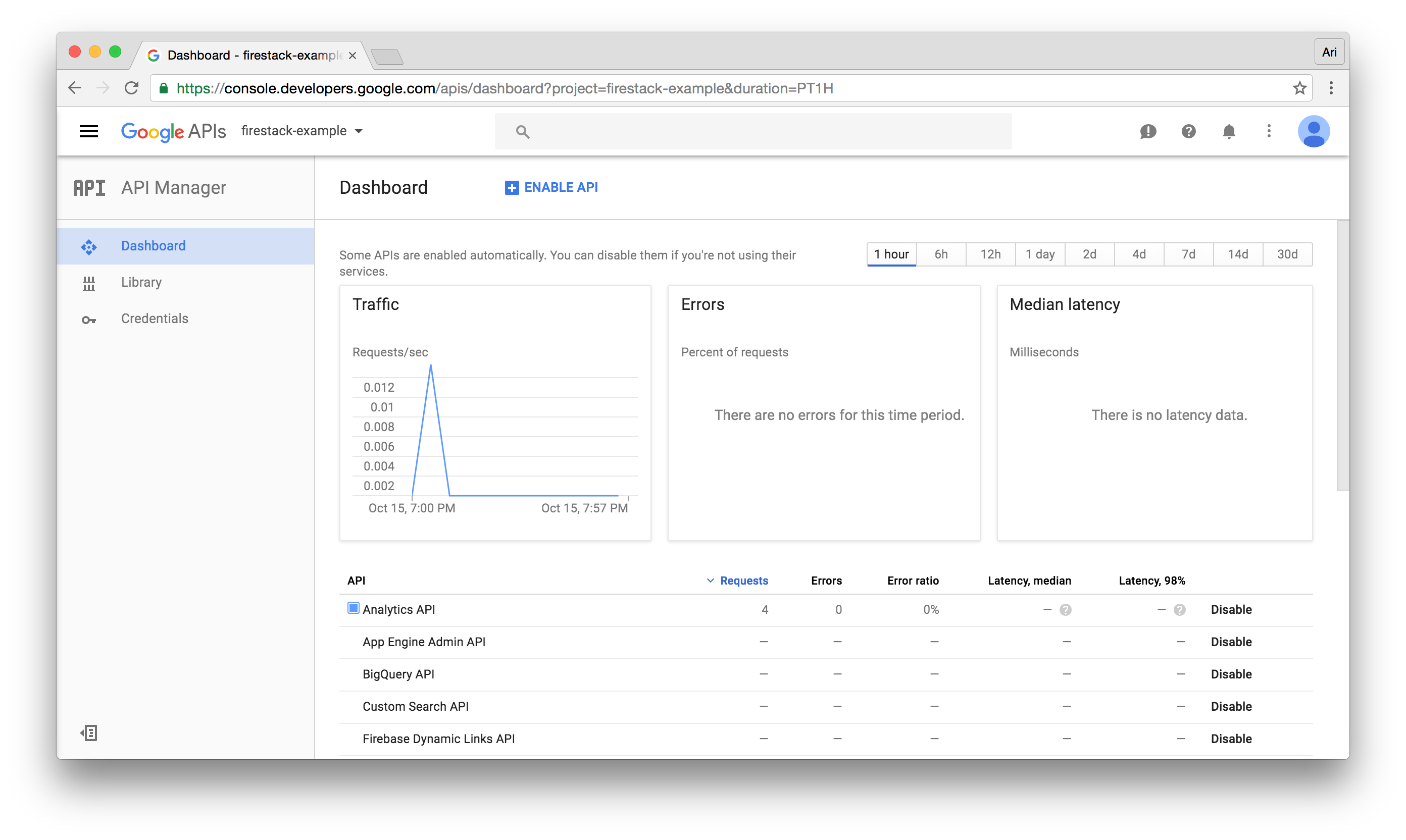 We need to enable the Identity Toolkit API API. Click on Enable API and add this api to your app. Once it's enabled, we'll need to collect our credentials.