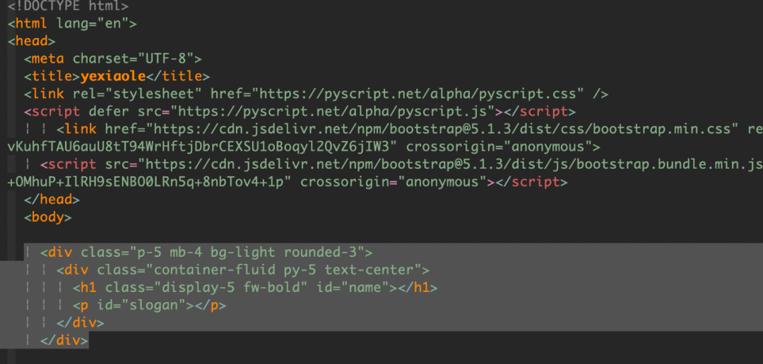 其中 <h1> 的 id 为 name<p> 的 id 为 slogan